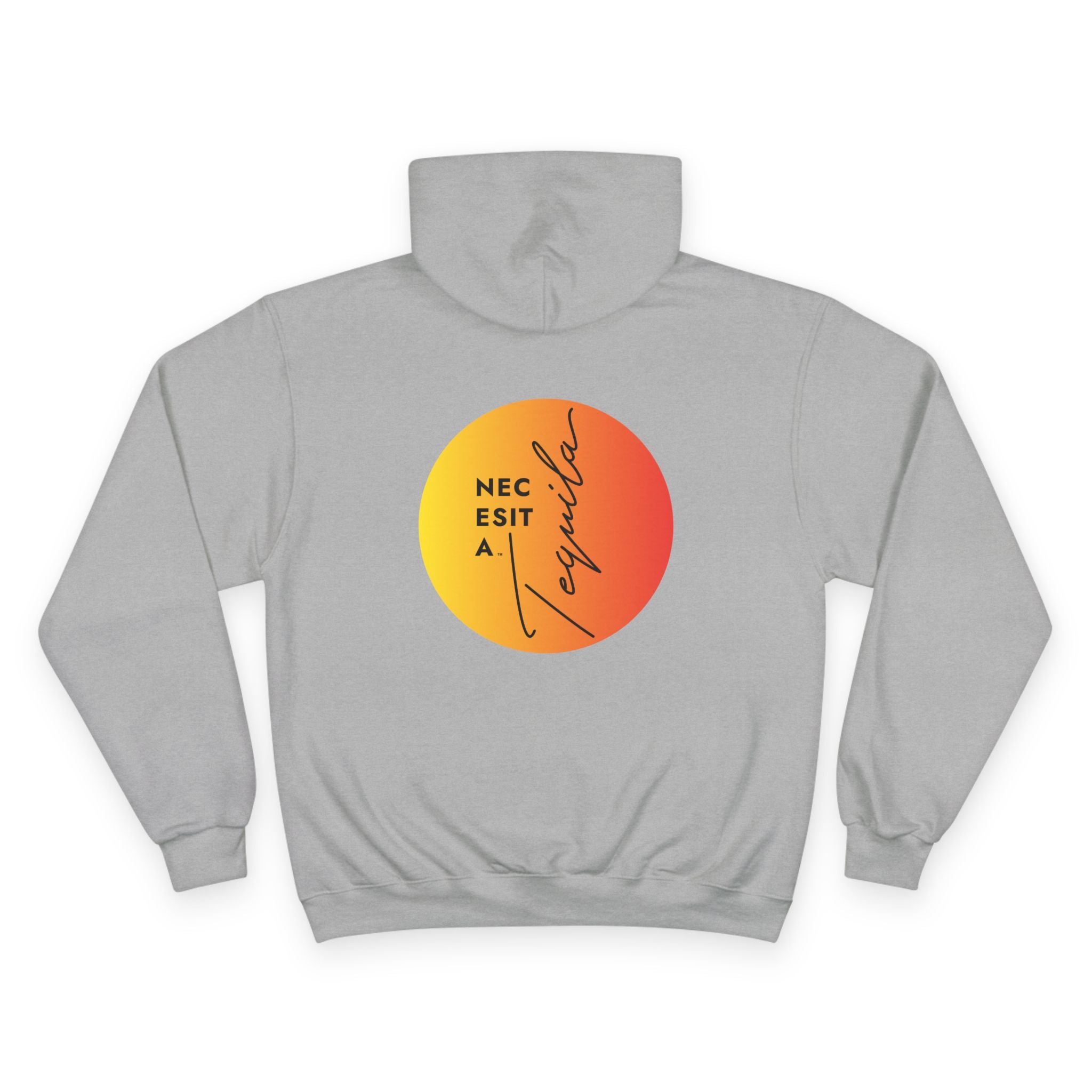 Champion Hoodie — 'Conceived In' Minimal Graphic Hoodie with Sunset 'Nec Esit A. Tequila' Back Print